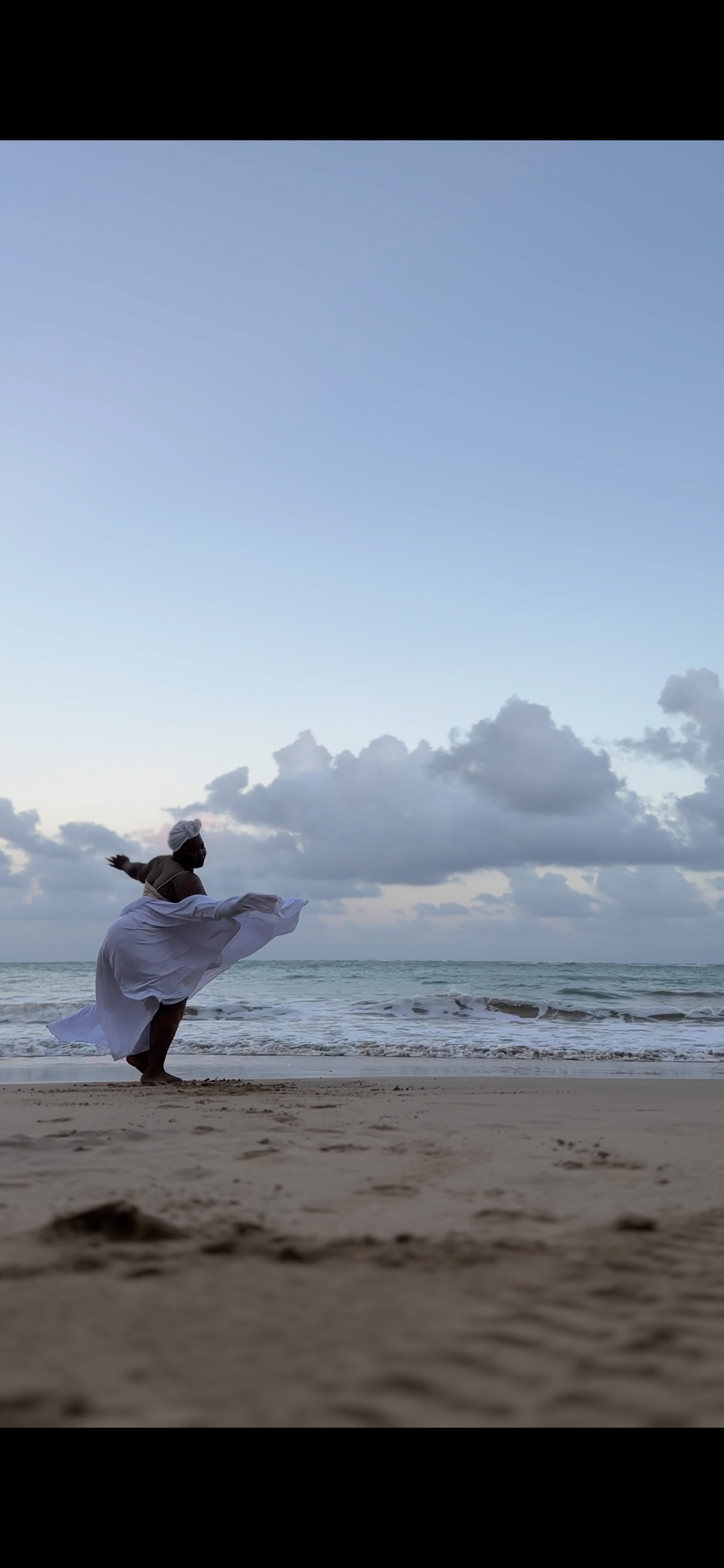 Dancing in my white praise skirt on the Isla Verde in San Juan, Puerto Rico